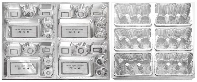 配套各類(lèi)PP、PET、PE、HIPS、EPS、PVC、PLA、BOPS降解材料的正壓熱成型模具以及三工位模具。(部分模具展示)