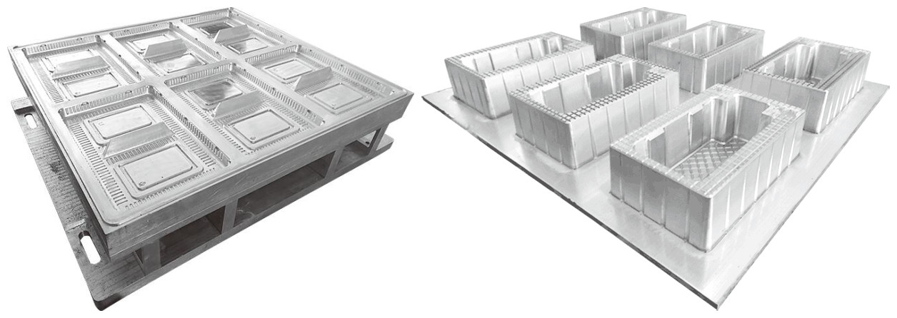 配套各類(lèi)PP、PET、PE、HIPS、EPS、PVC、PLA、BOPS降解材料的正壓熱成型模具以及三工位模具。(部分模具展示)